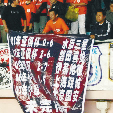 中超標語甚至成為奧運后中國足球的一棵救命稻草,讓聯(lián)賽不至于清湯寡水,還別有滋味。球迷因為寫標語而引發(fā)對足球的關注更是無價之寶。