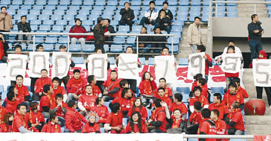 在遼足保級的危難關頭,沈陽球迷不離不棄,每場都有萬余名鐵桿球迷到現(xiàn)場為遼足加油。看臺上的經(jīng)典標語更是層出不窮,“勝也愛你,敗也愛你”、“2008≠1995”、“榮辱與共”,體現(xiàn)了球迷對遼足的一片癡情。