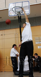 被稱為“世界第三高人”的孫明明出生于中國黑龍江省,現年25歲,其身高比NBA球員姚明還高出了10厘米。在7月于美國拉斯維加斯舉行的bj聯賽選秀賽上,濱松隊主帥一眼相中了孫明明。他打起廣告說“踮起腳就能灌籃。希望不了解籃球的人們也能來看球”。