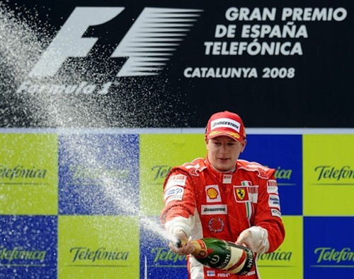 當地時間27日晚,F1大獎賽西班牙站比賽在巴塞羅那賽道燃起戰火,接連不斷的事故成為了本站比賽的主角,最終來自法拉利車隊的萊科寧和馬薩包攬了前兩名。圖為萊科寧慶祝奪冠。