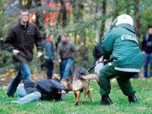 在后退過程時他不慎跌到,于是警犬就撲向他并咬住了他的襠部。而后果相當(dāng)慘重:2厘米長的包皮被生生咬下懸垂在生殖器之上!隨后德克被送往醫(yī)院縫針救治并住院四天,萬幸的是醫(yī)生診斷這一傷口并未留下后遺癥,功能健全不會對他今后的生活造成困擾。