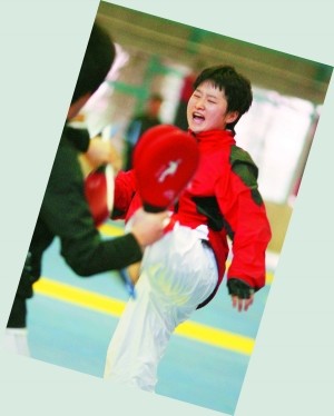 在軍體院的外訓(xùn)館中,近50名中韓一線跆拳道選手在韓國國家隊教練文元載的指導(dǎo)下發(fā)出歇斯底里的撕殺聲,其中那個清脆響亮的聲音則是來自北京奧運冠軍吳靜鈺,個頭在隊中排行倒數(shù)第二的小女孩,用快準(zhǔn)狠且令人眼花繚亂的步伐猛踢著同訓(xùn)的韓國男隊員手中的腳板;祀s在近50名隊員中的她,身上絲毫不見奧運冠軍級的“小灶”。