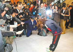 福原愛含淚鞠躬致歉粉絲。(圖片來源:重慶晚報)