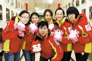 在昨天的網絡聊天現場,這群活潑的姑娘對著話筒唱出對隊長王冰玉的表白:“胖冰胖冰我愛你,就像老鼠愛大米……不對,就像大米愛老鼠……胖冰是1984年生的,屬老鼠。”王冰玉對隊友的熱情弄得有些措手不及,漲紅著臉說“我也愛你們”。