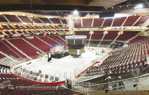 火箭的比賽不是在木地板上進行的嗎?約什得意地笑了,“隱藏在255塊木地板下面,是一整塊冰。”約什說完,立馬摳起一塊地板,讓記者親手觸摸到足足有1英寸厚的冰層。原來,豐田中心不單是火箭的主場,同時也是休斯敦冰球隊的主場。每當火箭比賽前,豐田中心工作人員就會在冰面上鋪起木地板。當冰球隊比賽前,木地板會被撤走。由于美國的冰球賽季幾乎和NBA賽季起止時間一樣,因此火箭隊整個賽季其實都是在冰面上比賽的。“更換地板的過程需要4小時到6小時,我們為地板編了號的,可以更換得很快。”約什說,由于常常是在冰球比賽第二天就會進行籃球比賽,因此工作人員會通宵達旦地工作,以保證籃球隊第二天早上的訓練。