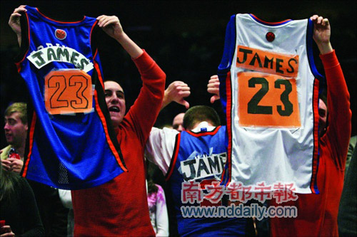 在近兩萬人的吹呼聲中,詹姆斯昂首入場、揮手致意、將鎂粉撒向空中,然后在開場不久背靠背三分球命中,現場的歡呼更如潮水般洶涌……北京時間昨天,“皇帝”率騎士做客紐約,情景一如上周在新澤西的時空交錯,但是麥迪遜花園球館的激情不是河對岸的小鎮可以相比的,當尼克斯已經擺出了兩年后除了迎接“圣駕”再無退路的姿態,瘋狂的紐約客們也開始提前幻想2010年的盛況。