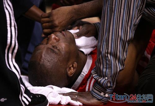 場邊叫出暫停,火箭隊醫凱斯·瓊斯沖到大叔身邊……在躺了5分鐘之后,玫瑰花園的工作人員甚至用擔架車將穆大叔抬出了場。雖然是場上對手,但開拓者的球迷依然爆發出熱烈的掌聲。火箭不得已重新換上姚明。