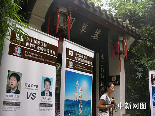 常昊九段與韓國棋手李昌鎬九段在成都武侯祠爭奪春蘭杯冠軍,決賽海報一經貼出,很快吸引了游人的目光。