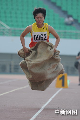 農運會花絮:60米麻袋跳搬運選手展"輕功"(圖)