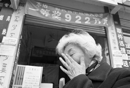 前晚24時,省體彩中心宣布922萬元大獎被棄領(lǐng),這起事件本已塵埃落定,但昨日事情又出現(xiàn)波折:盡管手上沒有中獎的那張彩票,也記不清楚中間的幾位數(shù)字,滿頭銀發(fā)的胡慧瓊昨日中午依然第3次來到都江堰景環(huán)路277號體彩銷售點(diǎn),她堅(jiān)信自己就是那位922萬元大獎的得主。