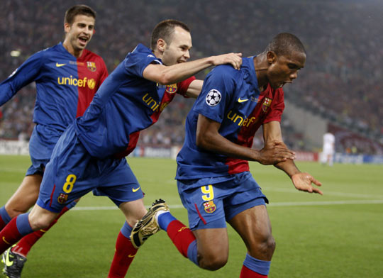 歐冠:埃托奧梅西破門 巴薩2-0完勝曼聯捧三冠王