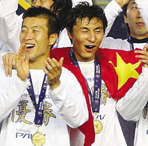 李瑋峰身披五星紅旗慶祝 韓足協杯水原點勝(圖)