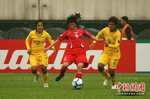 中新網(wǎng)成都5月20日電(記者劉忠俊 劉賢 楊杰)2010年女足亞洲杯A組比賽拉開(kāi)戰(zhàn)幕,亞洲勁旅朝鮮女足迎戰(zhàn)泰國(guó)女足。開(kāi)場(chǎng)4分鐘朝鮮隊(duì)連進(jìn)2球,下半場(chǎng)再進(jìn)一球,以3:0大勝泰國(guó)隊(duì)。