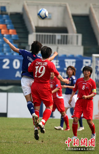 中新網成都5月24日電(記者劉忠俊 劉賢)24日,成都持續高溫天氣。2010年女足亞洲杯A組最后一輪比賽朝鮮隊與日本隊爭奪小組第一。