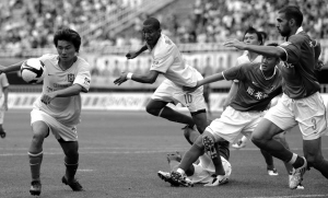綠城昨天的確打了陜西一個措手不及,下半場出場時,陜西前鋒李毅“大帝”(9號)居然穿了條8號(李彥)的褲子。再來看看李彥,他穿的是李毅的9號球衣。發現這一紕漏后,主裁判馬上中止比賽,讓兩人進行“現場換衣秀”。換件衣服還沒什么,可憐的李毅還得跑到角落去換球褲,這一場景讓場上的球員都樂壞了。