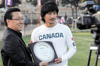 昨天下午,在大連隊(duì)訓(xùn)練時(shí),來自韓國的KSB電視臺采訪組,一直在場邊拍攝安貞煥的訓(xùn)練畫面。訓(xùn)練結(jié)束后,他們邀請安貞煥做了一個(gè)訪談節(jié)目,介紹安貞煥在大連的足球生活。韓國鐵道部旗下的一家鐵路建筑公司,邀請安貞煥擔(dān)任他們的形象大使,采訪組代表在訓(xùn)練場邊向安貞煥贈送了“形象大使”的紀(jì)念獎(jiǎng)杯。