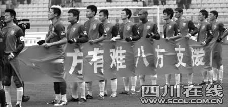 2:1的勝利結束之后,連續兩 場進球的成足隊長李鋼說,“希望災區的人們像我們今天比賽一樣,無論遇到什么樣的困難,只要我們團結一心,只要我們選擇堅強,我們都能獲得最終勝利!”比賽結束之后,球迷散去的人群中還有纏著綠絲帶的志愿者球迷在募捐,“球賽盡管結束了,可是我們還想為災區再多做一點事情,我們做得越多,他們受到的苦難就會越少。”