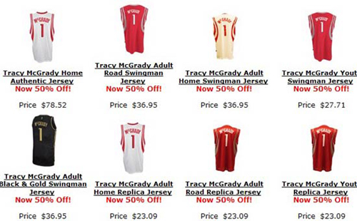 我們不得不注意一個事實:麥克·詹姆斯的球衣,在交易前兩天以半價出售;“棒子”威爾斯和阿爾斯通的球衣在交易同一天被半價出售……打開火箭官方商店的網站,我們可以清楚的看到,麥迪系列的球衣已經被擺上了大甩賣貨架,一律五折出售。