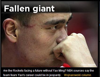 美媒:中國(guó)籃球巨人墜落 姚明職業(yè)生涯恐已終結(jié)