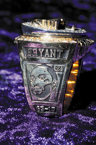 以前的總冠軍戒指都要分別刻上不同球員的名字和號碼,新版湖人總冠軍戒指又作出創新,增加了球員頭像。每一枚總冠軍戒指又會選出一顆鉆石刻上湖人的“L”字母,不同戒指的這些“L”所處鉆石的位置又會不同,必須通過高倍顯微鏡才能看到,因此每人的總冠軍戒指都是自己獨一無二的身份證明。