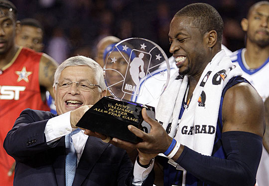 東部隊的韋德憑借全面的表現將MVP收入囊中,整場比賽中共得到28分、11次助攻、6個籃板和5次搶斷!斑@是一份榮耀,我是代表東部全明星隊來領取這份榮耀的!”韋德說。