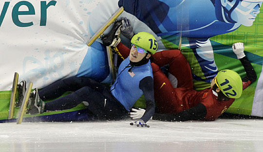 中新網(wǎng)2月21日電 北京時間今天上午,2010溫哥華冬奧會短道速滑女子1500米半決賽中,此前奪金呼聲很高的中國選手王濛遺憾摔出賽道被判犯規(guī),無緣決賽。
