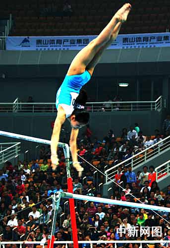 中新網濟南5月16日電(記者 胡洪林 王超)5月16日晚,山東省濟南奧體中心明星薈萃、人聲鼎沸,2009年全國體操錦標賽進行了前5個單項的決賽。在此經過一番激烈的角逐,5枚金牌各得其所。“一姐”程菲毫無懸念奪得跳馬冠軍,江鈺源一洗昨日比賽失誤之不幸,行云流水般出色完成整套高低杠動作,喜笑顏開的捧走這一單項金牌。