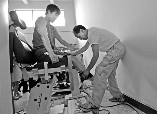 為了讓劉翔更好更快更均衡地恢復,孫海平費盡了心思。他昨天透露了他想出的幾個絕招,“從來沒有人使用過的!币皇菢鋬蓧K板,讓劉翔兩腳在上邊畫圈、點擊,這既可以讓劉翔傷腳得到力量和靈活性鍛煉,又可以讓雙腳更協調;另一招是劉翔前些日子出現了單腳平衡性不好后想出來的,是讓劉翔站在沙坑里練單腳站立。