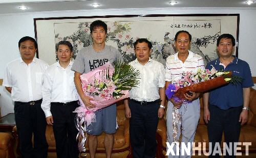 上海莘莊訓練基地,上海市普陀區委書記周國雄等人當日代表普陀父老鄉親為即將出征全運會的劉翔壯行——劉翔是“土生土長”的普陀人。灰色T恤,灰色短褲,踏一雙亮黃色的運動鞋,剛睡過午覺的劉翔看起來氣色不錯。