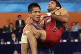 23日,亞運摔跤比賽,中國選手高峰戰勝伊拉克選手獲得銅牌,賽后,高峰將在比賽中受傷的對手抱下場。[詳細]
