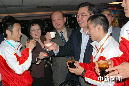 慶功會由大芝加哥地區華聯會副主席蔡扶時主持。華聯會主席劉紅說,中國隊這次取得了一金四銅的好成績,并有七人獲得參加北京奧運會的比賽資格,為祖國、為中國人民和海外華人華僑增了光,我們感謝你們。