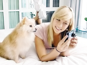 莎娃攜愛犬拍新廣告 美少女著吊帶回歸清純(圖)