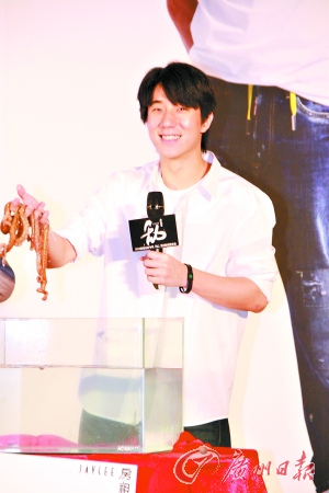 成龍雖未到場(chǎng),房祖名卻請(qǐng)來(lái)了時(shí)下最火的明星“章魚(yú)哥”保羅來(lái)為新專輯的成績(jī)做預(yù)測(cè)。房祖名分別將“金曲獎(jiǎng)”和“銷量突破50萬(wàn)”兩個(gè)心愿牌放在兩個(gè)被罩住的魚(yú)缸前,并許愿說(shuō),“得‘金曲獎(jiǎng)’比較現(xiàn)實(shí)點(diǎn),章魚(yú)哥你還是選‘金曲獎(jiǎng)’這邊的魚(yú)缸吧!”揭開(kāi)幕布,“章魚(yú)哥”果然沒(méi)讓房祖名失望。他高興得立即從缸里撈起“章魚(yú)哥”,猛地一陣愛(ài)撫,隨后發(fā)現(xiàn)保羅沒(méi)什么精神時(shí),房祖名緊張大呼“趕緊送‘章魚(yú)哥’去醫(yī)院治病!”(記者 程雪超 攝影報(bào)道)