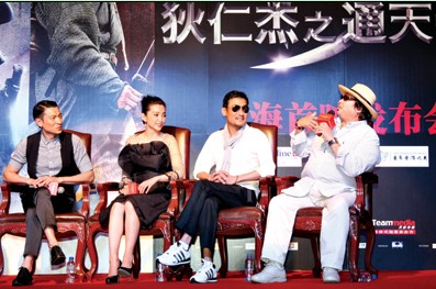 劉德華:我從來不介意自己的造型,只是介意這個人物的性格自己有沒有表達出來。我只是很怕戴頭套,因為我覺得看起來很假,所以我要留長頭發。大家看到這部戲里面長頭發的造型都是我自己的頭發,我蠻喜歡這樣真實的感覺。所以古裝片如果要找我拍戲,就要等我把頭發先留長。