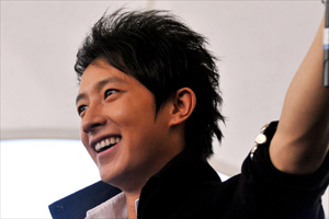韓庚并沒有讓2000名海內外歌迷等太久,約下午4點10分就抵會場,他一亮相,歌迷尖叫聲四起,陸續齊聲大唱《愛的翅膀》,顯然讓臺上的韓庚很感動。
