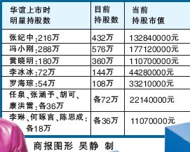 自從去年九月底華誼兄弟股票上市以來,張紀中、馮小剛、黃曉明等眾多華誼明星的頭上又多了一個新的稱謂:“華誼股東”。一夜之間,這些明星們的身家暴增,坐擁千萬財富。