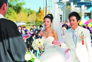安以軒昨日在微博上說,“今早一醒來就收到神秘人送來的甜蜜巧克力!真是美好的一天~我要結婚了!”讓人誤以為繼大S之后她也要突然閃婚。其實只不過是她和韓星李承鉉在北京趕拍電影《結婚狂想曲》而已。該片講述了一對戀愛7年的年輕戀人,在準備結婚的前幾天,因一場無名火燒碎兩人的夢,于是決定以舉辦一場網(wǎng)絡視頻婚禮直播洞房花燭夜為由頭,吸引各類廠商贊助從而博得貪財岳母的支持,至此,一場啼笑皆非的婚禮轟轟烈烈地展開。昨日記者趕往劇組探班,正好趕上男女主角結婚的一場大戲,安以軒和李承鉉還在現(xiàn)場大秀吻技,惹得一片驚叫連連。