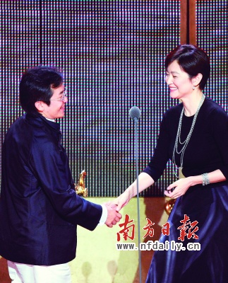 沉寂多年的香港歌手劉美君今年4月回香港開演唱會之后就被導(dǎo)演邱禮濤看中,邀請她加盟電影《我不賣身,我賣子宮》。結(jié)果第一次當(dāng)主角的劉美君居然憑借該片得到了金馬影后的頭銜。劉美君在現(xiàn)場異常激動,連稱自己完全沒有想到。而在后臺接受采訪時,她更是激動到落淚,并且宣稱,這個獎項對她來說,是最好的生日禮物(劉美君12月10日生日)。