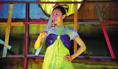 苗圃在片中飾演的是一群大老爺們中唯一的女性杏胡,為了幫孟夷純湊錢,幾個破爛王在自家大院舉辦了一臺“慈善晚會”——眾人的禮服全部由各式塑料袋拼接而成,杏胡更是放聲高唱《山丹丹開花紅艷艷》,十足芙蓉姐姐的“驚艷”模樣。