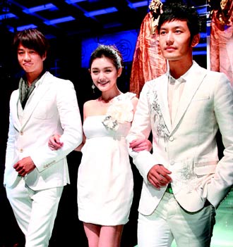 昨天曾和何潤東傳緋聞的林嘉綺也參加演出,她因與大S長得像,和仔仔拍“痞子英雄”的床上戲,都被拿來比成大S而大作文章。昨天2人在臺上大方相擁拍合照,大S大方說:“我們曾在我主持的節目中相認過!