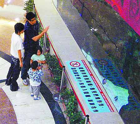 蔣友柏(后)全家觀賞水族箱。