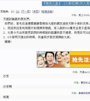 過去數(shù)日,被稱為“奇拿”的發(fā)相神秘人先后兩度以突襲式在網(wǎng)上發(fā)布逾百張從未曝光裸照,引來大批網(wǎng)民通宵留守電腦前等候最新消息。前晚,有網(wǎng)友在內(nèi)地論壇發(fā)布一條預(yù)告(見上圖),稱11日阿嬌復(fù)出時(shí)將在網(wǎng)上同步發(fā)送阿嬌與陳冠希的一段性愛片段,任由網(wǎng)友觀賞。
