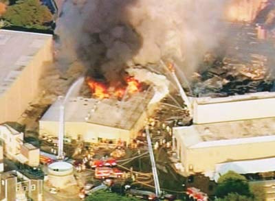 起火點是影城內(nèi)一個攝影棚,事發(fā)當(dāng)時可能進行著拍攝工作,而且發(fā)生過至少一次爆炸。濃濃黑煙竄上數(shù)十米的高空形成蘑菇云,消防局一度派出直升機到現(xiàn)場上空灑水滅火。