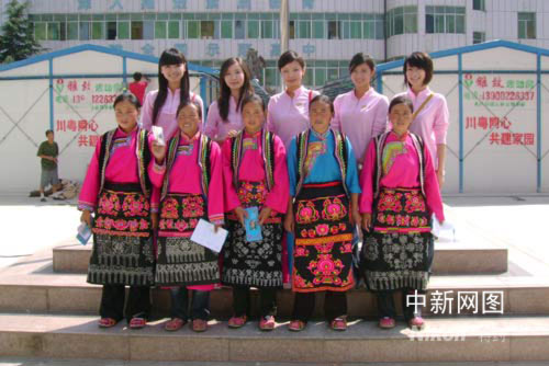 由2006年中華小姐冠軍黃橙子、2007年中華小姐冠軍曾光、2006年華姐選手王江蕾、2007年華姐選手王婕妤以及2007年華姐選手張詩佳組成的第一組華姐義工團隊,先后走訪了茂縣、汶川縣和理縣的6個羌族鄉(xiāng)寨,行程上千公里,而且此行食宿、交通等一切費用都由選手自己擔負。
