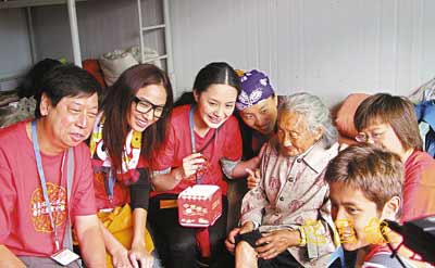 據(jù)香港文匯報(bào)報(bào)道,鐘欣桐、鄭希怡和李逸朗前日以英皇慈善基金成員身份,出席在四川擂鼓鎮(zhèn)舉行的“英皇擂鼓心連心關(guān)愛賀中秋”探訪活動。身著紅色T恤、牛仔褲和靴子的阿嬌,看起來很精神。他們一行三人先到一位婆婆的家探訪,和婆婆傾偈之余又為她按摩,原來婆婆的十名親人在早前的大地震死去,只剩下一個(gè)孫女,他們離開婆婆的家時(shí),對方又送他們花生,當(dāng)被拒絕時(shí),婆婆實(shí)時(shí)落淚,阿嬌和鄭希怡就借機(jī)引開婆婆的注意力,讓李逸朗把花生放回婆婆家中。