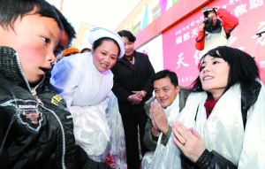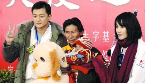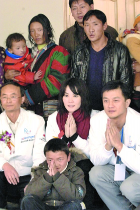 11月28日,李亞鵬、王菲夫婦在西藏與被救助的患者合影留念。