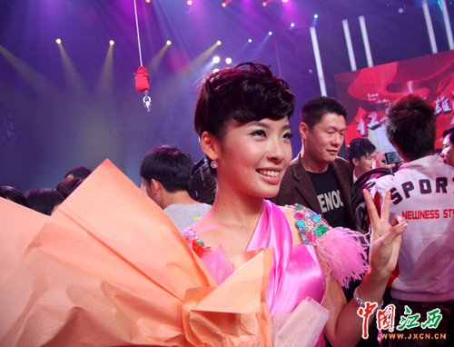 〖徐丹〗前幾天,我就接到一個電話,有單位找我去北京簽約,但是我還是拒絕了。通過中國紅歌會這個比賽,我反而更喜歡留在家鄉了,真的!我就想到我是江西的歌手,希望能為家鄉出點力。另外媽媽也在南昌,所以不想離開。同時作為一個女孩子,在有一定事業的前提下,我更希望有個穩定的家庭,然后在穩定中爭取機會。