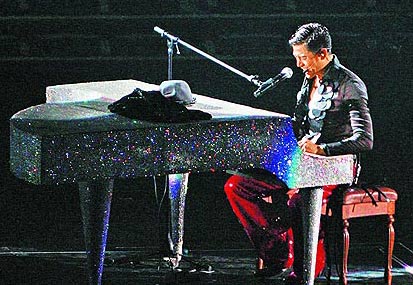 此外,他還苦練2個(gè)月鋼琴,展現(xiàn)動(dòng)靜皆宜的誠(chéng)意,他說(shuō):“我每天半夜洗完澡后練琴,是拚命記下來(lái)的。”但前晚初彈《三岔口》時(shí),因太緊張頻出錯(cuò),他說(shuō):“后面彈不好,干脆重來(lái)好了。”沒(méi)想到他重彈了5遍,最后說(shuō):“彈鋼琴好難喔!你們以為我是周杰倫!”流露可愛(ài)一面。但他的國(guó)語(yǔ)隨緊張變得更不輪轉(zhuǎn),他苦笑:“我好緊張!國(guó)語(yǔ)一直打‘折’。”當(dāng)場(chǎng)被歌迷糾正是打“結(jié)”,他說(shuō):“我又回到18年前,我錯(cuò)了!