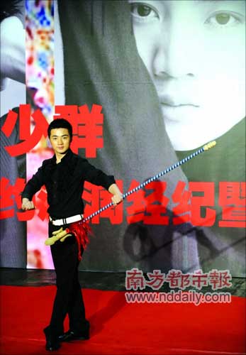 而總裁常繼紅則為剛“進(jìn)門”的余少群送上了超大厚禮,她現(xiàn)場(chǎng)宣布,海潤(rùn)的大老板從國(guó)外打來(lái)電話,宣布余少群將成為海潤(rùn)明年的“反武俠”戲《蓋世匹夫》的男一號(hào),而另一部中日合拍的年代戲也將由余少群主演,同時(shí)還在為他談幾部戲。常繼紅承認(rèn)自己是在《梅蘭芳》中發(fā)現(xiàn)了余少群,她也表示要力捧余少群成為大明星,“前有劉燁,后面就看余少群的了!”