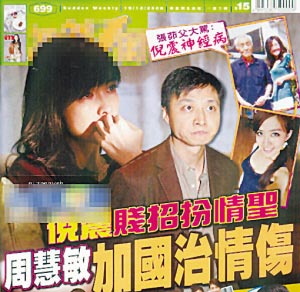 香港最新出刊的《忽然1周》為周倪結婚特意發《號外》,詳解倪震求婚內情。據報道,倪震與周慧敏之所以如此戲劇性地由分手變結婚,其實也是倪震的精心部署之一。原來17日《壹周刊》刊出倪震的三哭訪問,立即感動了周慧敏。據知,偷食事件發生之初,倪震當初曾想過借勢分手,不過,他沒想到連日來的“倒震”言論如此排山倒海一面倒,影響這么大。